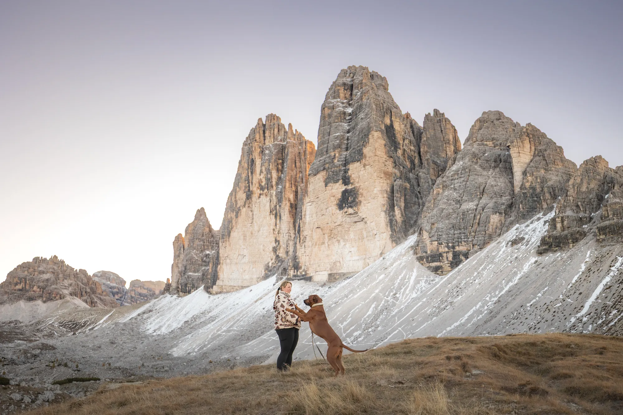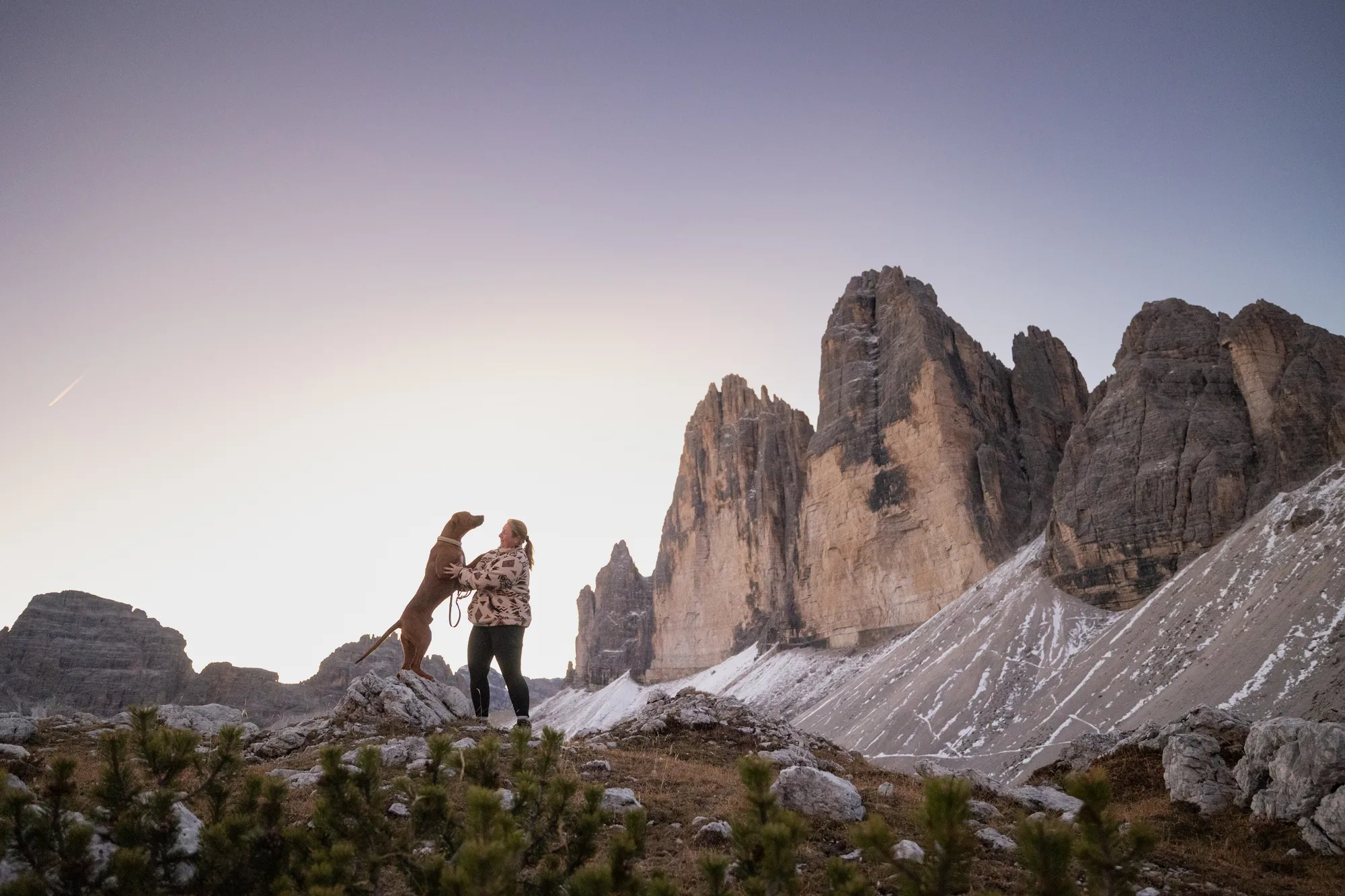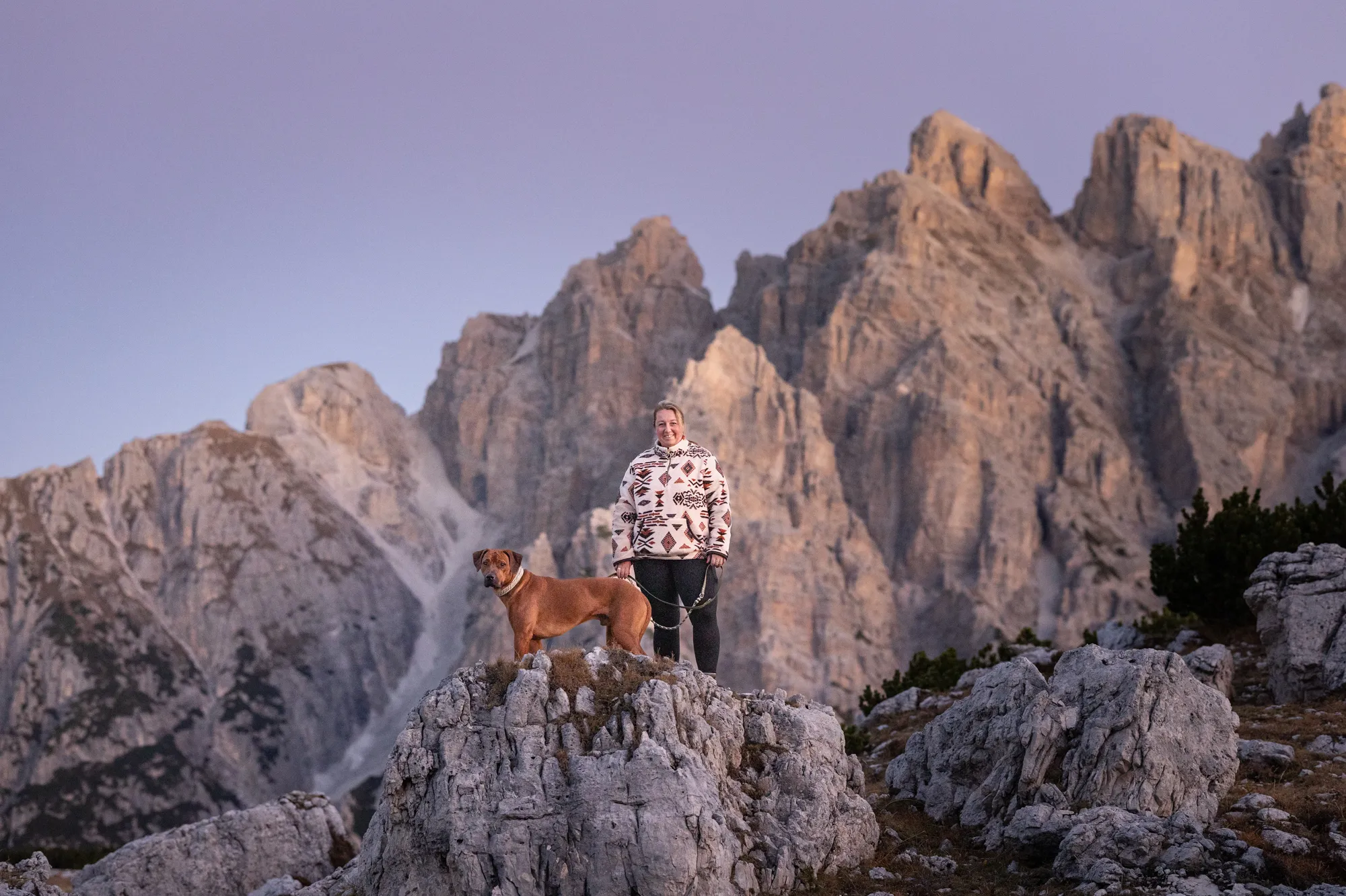 Wir entschieden uns für ein Sonnenaufgangsshooting an den Drei Zinnen – einem Ort, der die ganze Stärke und Zartheit des Lebens in sich trägt. Das erste Licht über den Gipfeln, die kühle Morgenluft, das Staunen im Blick.